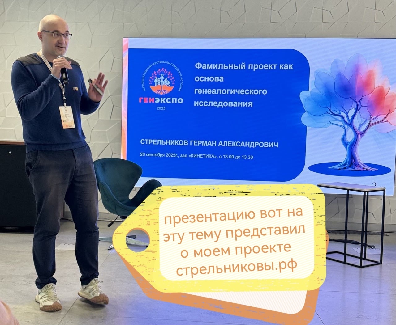 27 и 28 сентября 2025 года в Москве на территории научного кластера МГУ "Ломоносов" проходил Международный фестиваль семейной истории «ГенЭкспо 2025». В прошлом году я как слушатель принял в нем участие, а в этом стал модератором секции и представил слушателям презентацию на тему "Фамильный проект как основа генеалогического исследования". Как и ранее на фестивале участовали многие фирмы, оказывающие услуги в сфере генеалогии и генетики, а также одновременно проходил "Форум преемственности", содержание которого осталось для большинства участников фестиваля загадкой :)