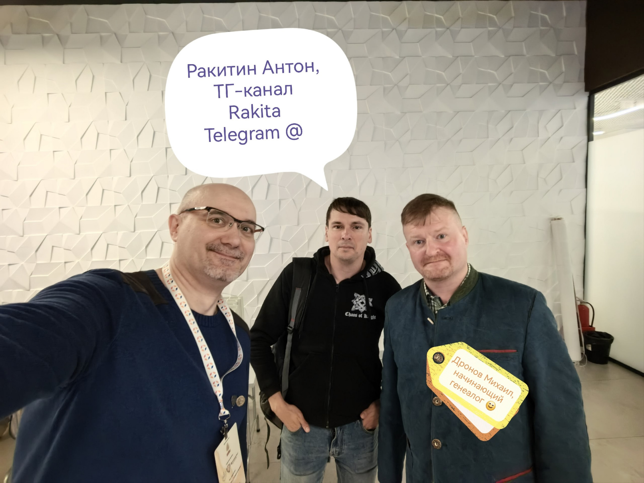 Отдельное спасибо докладчикам в секции, где я был модератором: Власенко И. (проект Дробышевского), Запальскому Г. (МГУ), Давыдову А. (Союз отцов), всем Шуваевым (проект Шуваевы вместе), Прокудиным П. и А. (проекты дополненной реальности и Роблокс), Берниковой А. (Сад родовых деревьев), а также коллегам из Союза Ворозрождения Родословных Традиций (Евсюкову Д., Тюриной О., Платоновой Е.) и, отдельно, Портной Марии (за вдохновение).