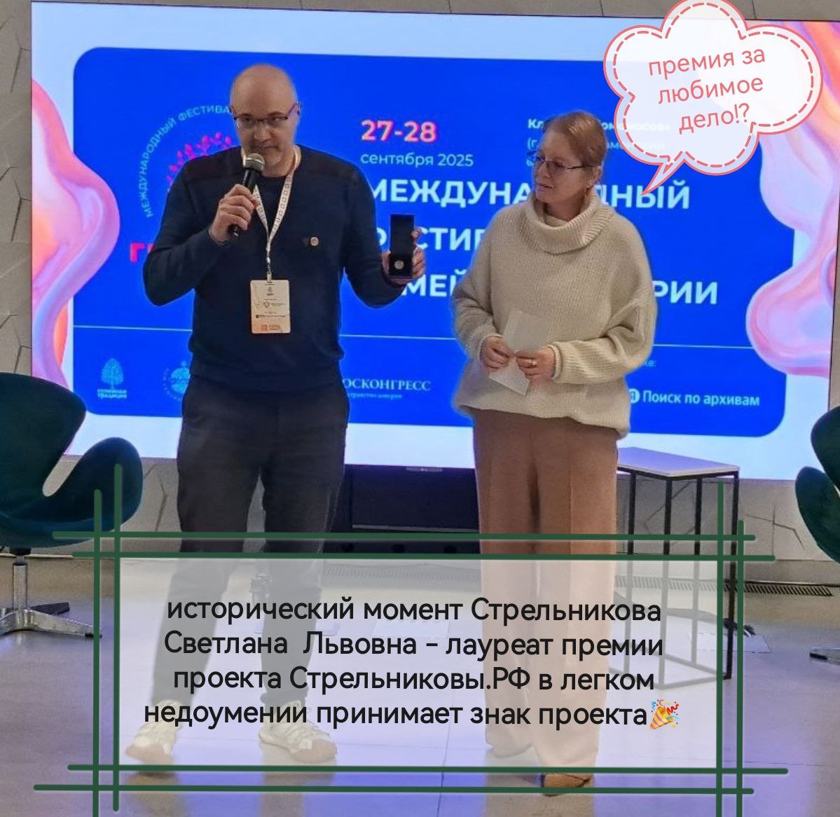3.наш проект прошел испытание медными трубами и теперь узнаваем широкой генеалогической аудиторией, включая специализированные и дружеские некоммерческие организации. В сентябре я, как основатель проекта, выступил с его презентацией на общероссийском фестивале ГенЭкспо 2025, а уже в октября демонстрировал первый плакат нашего проекта, посвященный Стрельниковым воронежской земли на выставке СВРТ в Воронеже.